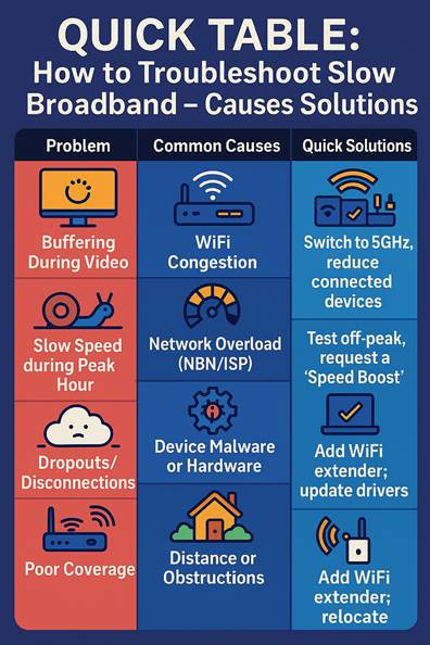 Quick Table: How to Troubleshoot Slow Broadband – Causes and Solutions