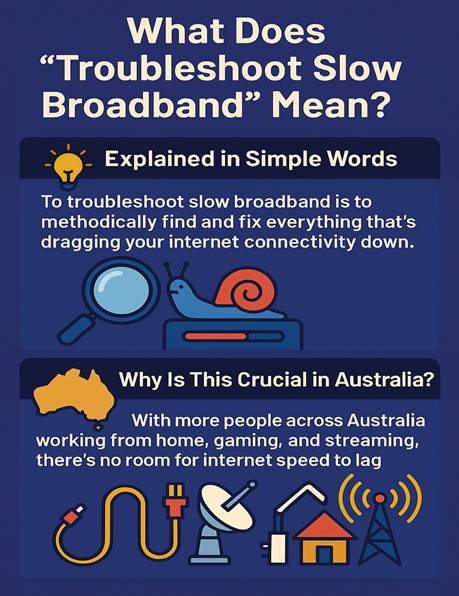 This blog explains some easy and effective ways to troubleshoot slow broadband in Australia, helping you figure out why your connectivity lags, some common concerns (from hardware to Wi-Fi issues), and result-yielding slow speed fix steps. The purpose is to provide you with step-by-step, clear guidelines so you can improve the speed of your internet connection at work or home without waiting for any professional help.